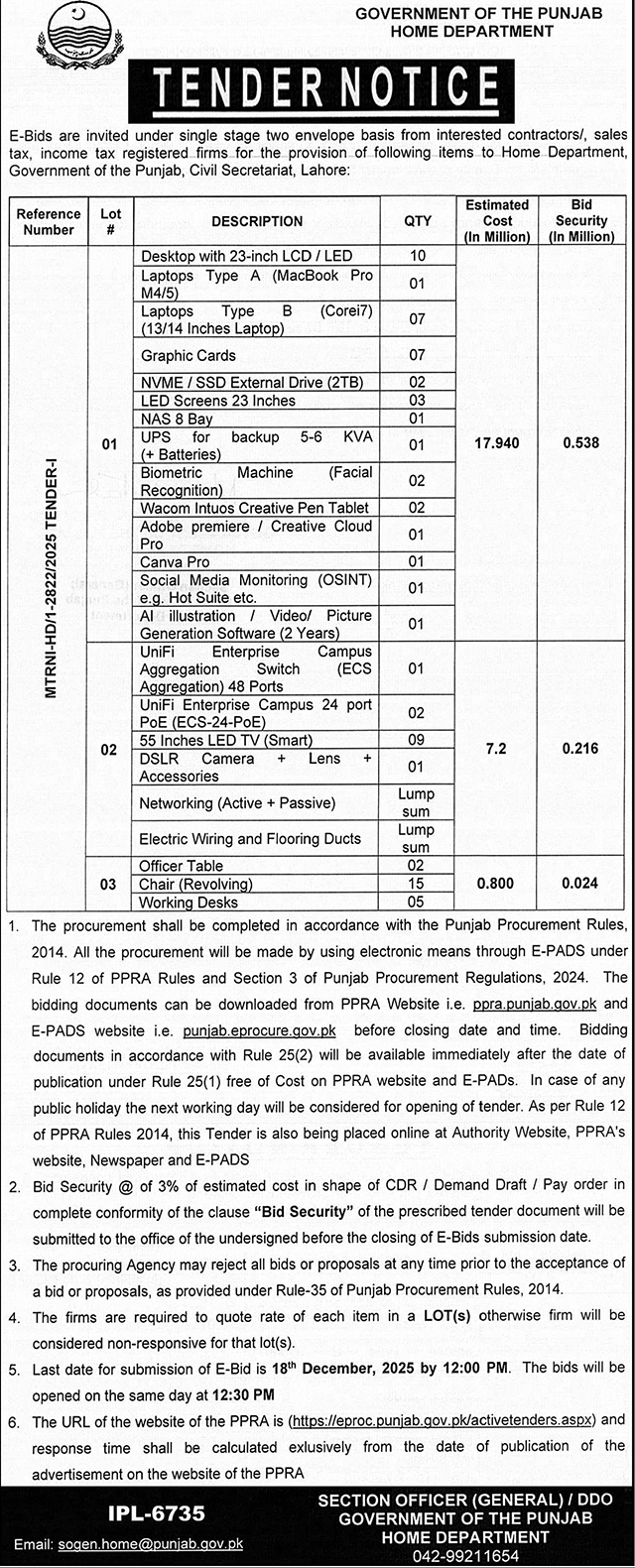 UPS, Telecommunications, Stationery, Software, Services Required, Security, Networking, Mechanical, Machinery, IT, Interiors, Generators, General Order Supply, Furniture, Energy, Electronics, Electrical, Computers/Accessories, Cables