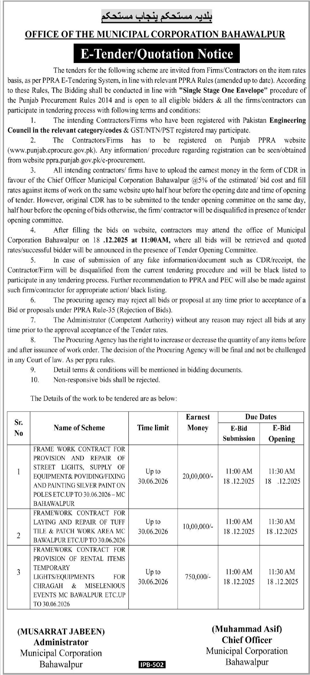 Water Supply Scheme / Drains / Sewerage, Tiles/Marbles, Streets / Soling, Roads, Repair & Maintenance, Mechanical, Machinery, Light, General Order Supply, Engineering, Energy, Electronics, Electrical, Construction, Buildings, Baldia