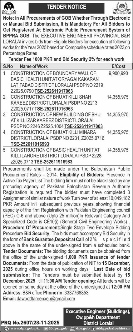 Water Supply Scheme / Drains / Sewerage, Roads, Repair & Maintenance, Engineering, Construction, Buildings