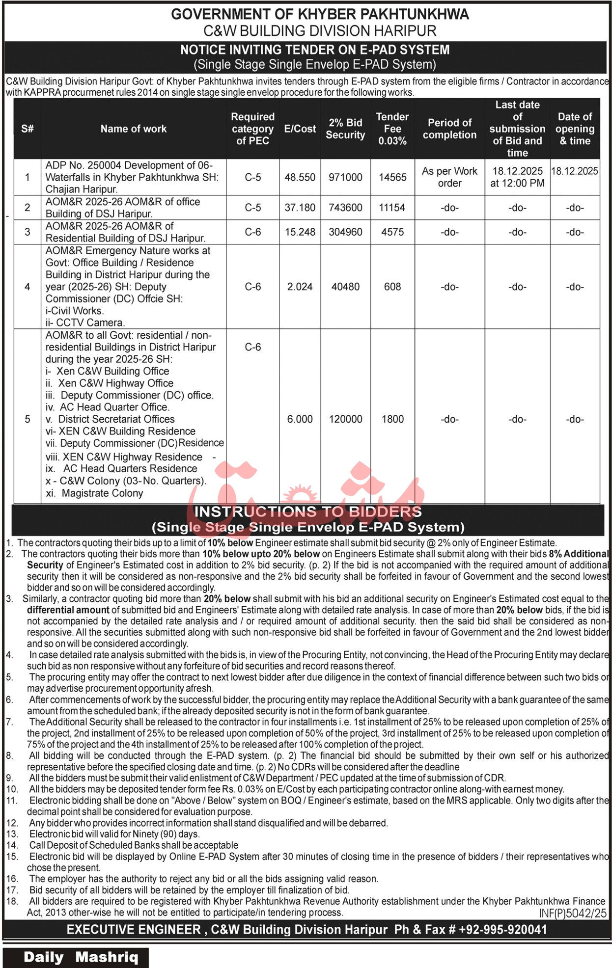 Water Supply Scheme / Drains / Sewerage, Roads, Repair & Maintenance, Engineering, Construction, Communication & Works, Buildings
