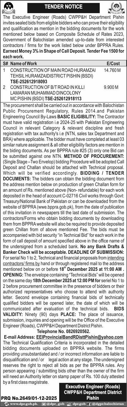 Water Supply Scheme / Drains / Sewerage, Roads, Repair & Maintenance, Engineering, Construction, Buildings