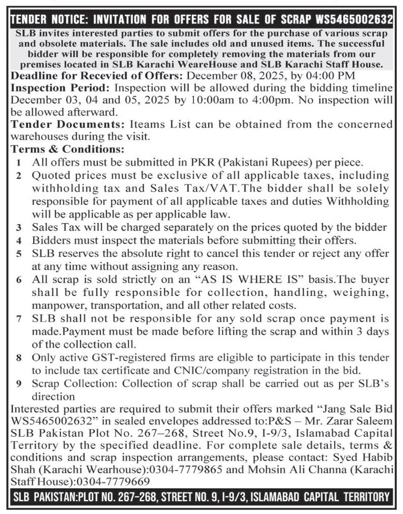 Toll Tax, Scrap Material, Baldia, Auction