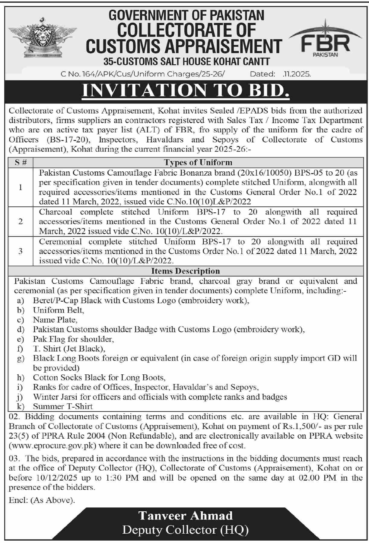 Tender Description
