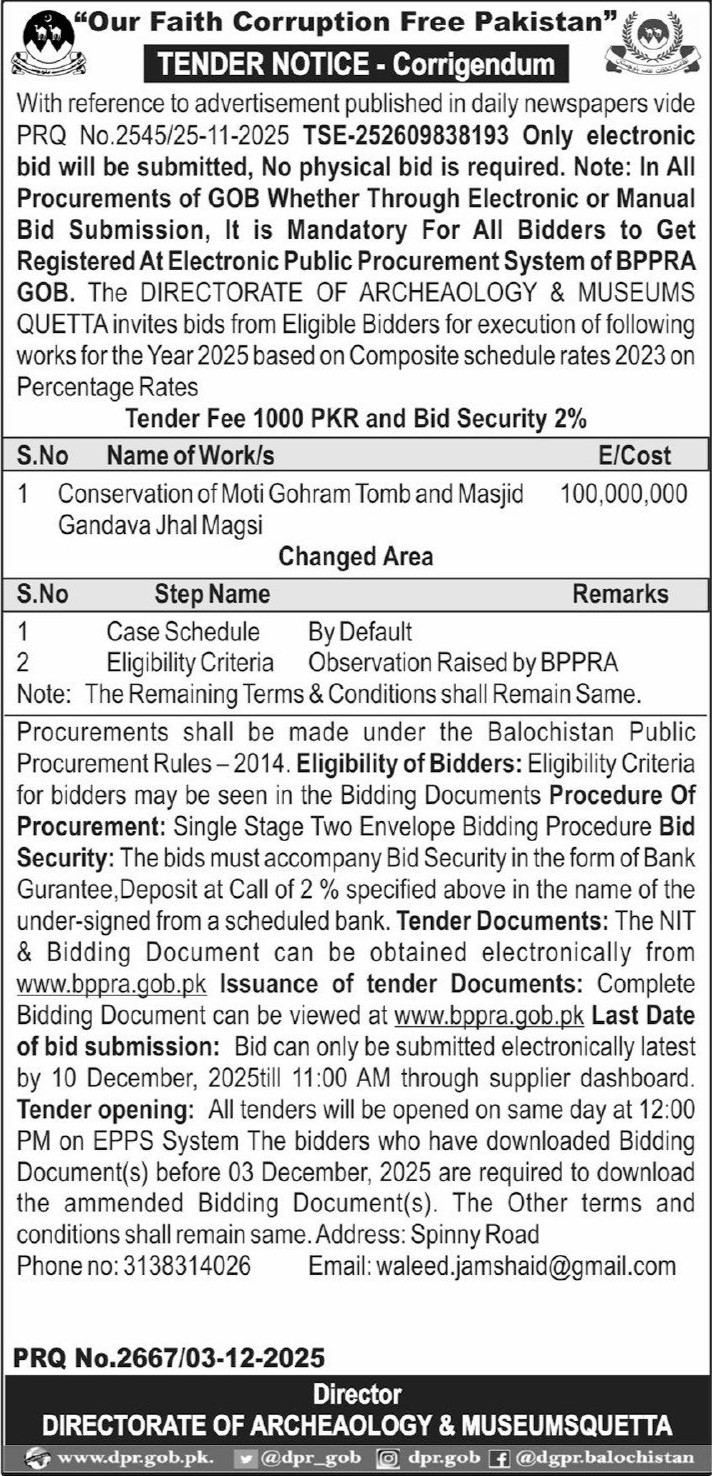 Tender Description