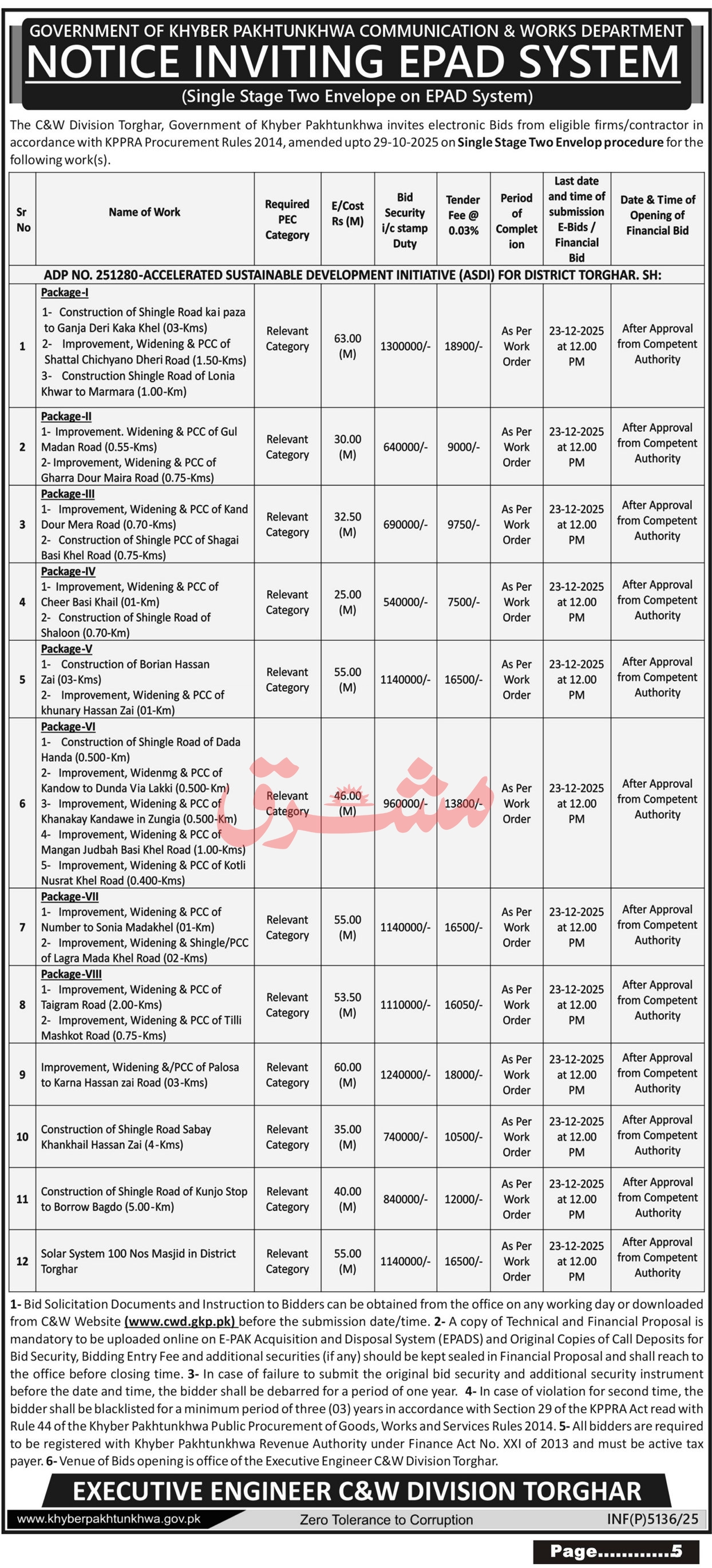 Water Supply Scheme / Drains / Sewerage, Roads, Repair & Maintenance, Engineering, Construction, Communication & Works, Buildings