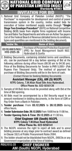 WAPDA, Textile/Uniform/Shoes, Mechanical, Machinery, General Order Supply