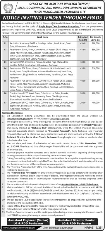 Water Supply Scheme / Drains / Sewerage, Roads, Repair & Maintenance, Engineering, Construction, Buildings