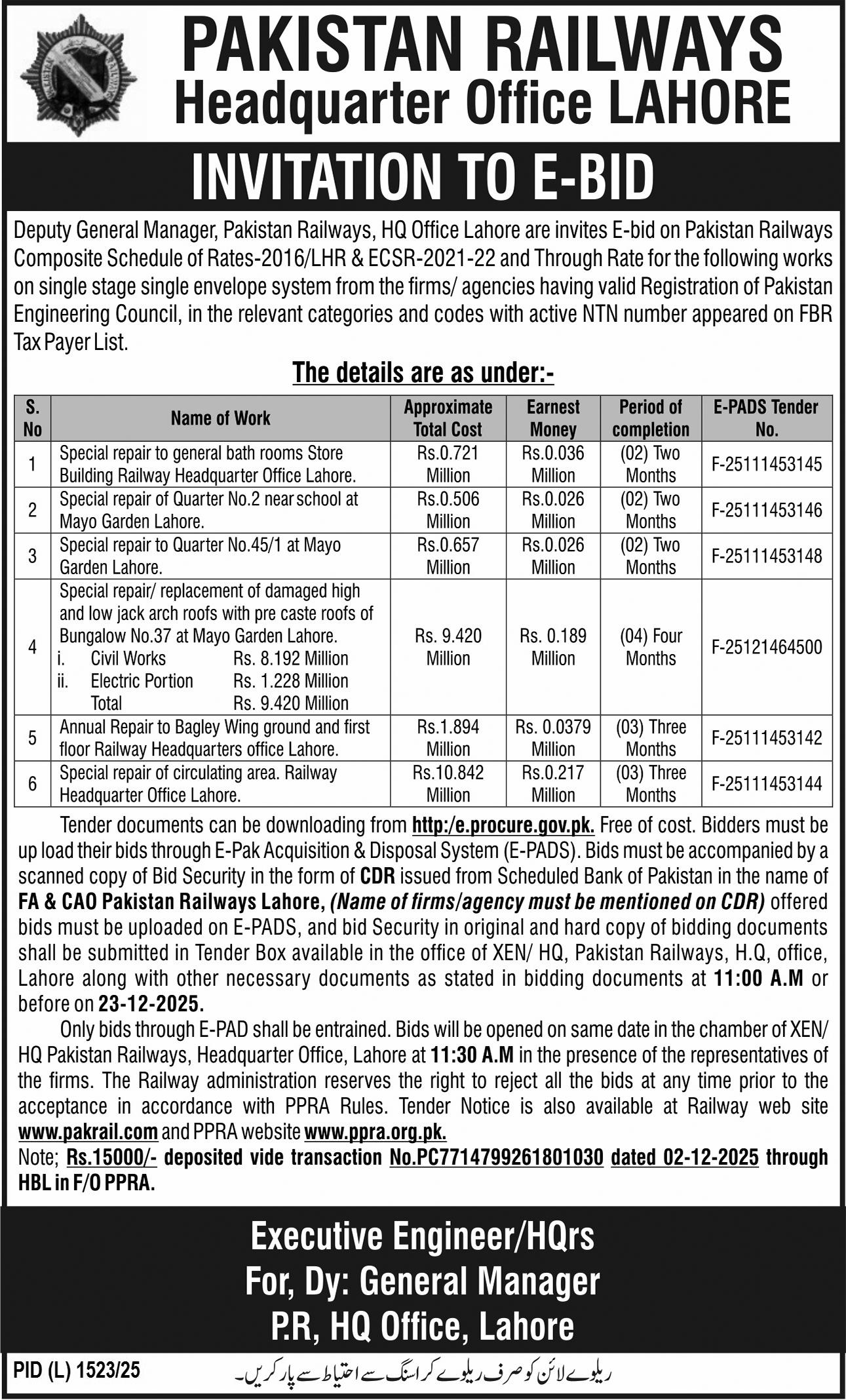 Water Supply Scheme / Drains / Sewerage, Roads, Repair & Maintenance, Railway, Engineering, Construction, Buildings