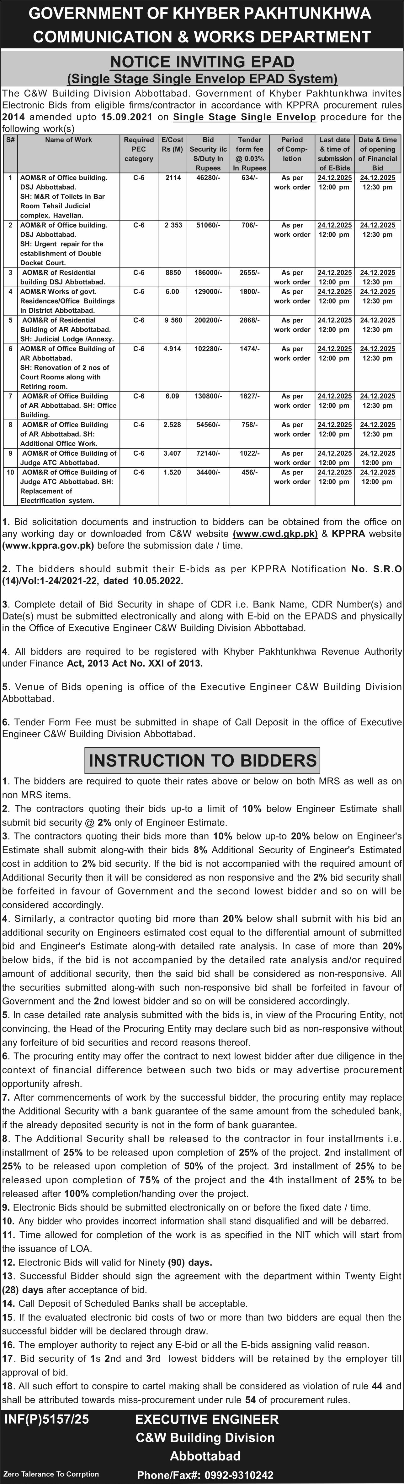 Water Supply Scheme / Drains / Sewerage, Roads, Repair & Maintenance, Engineering, Construction, Communication & Works, Buildings