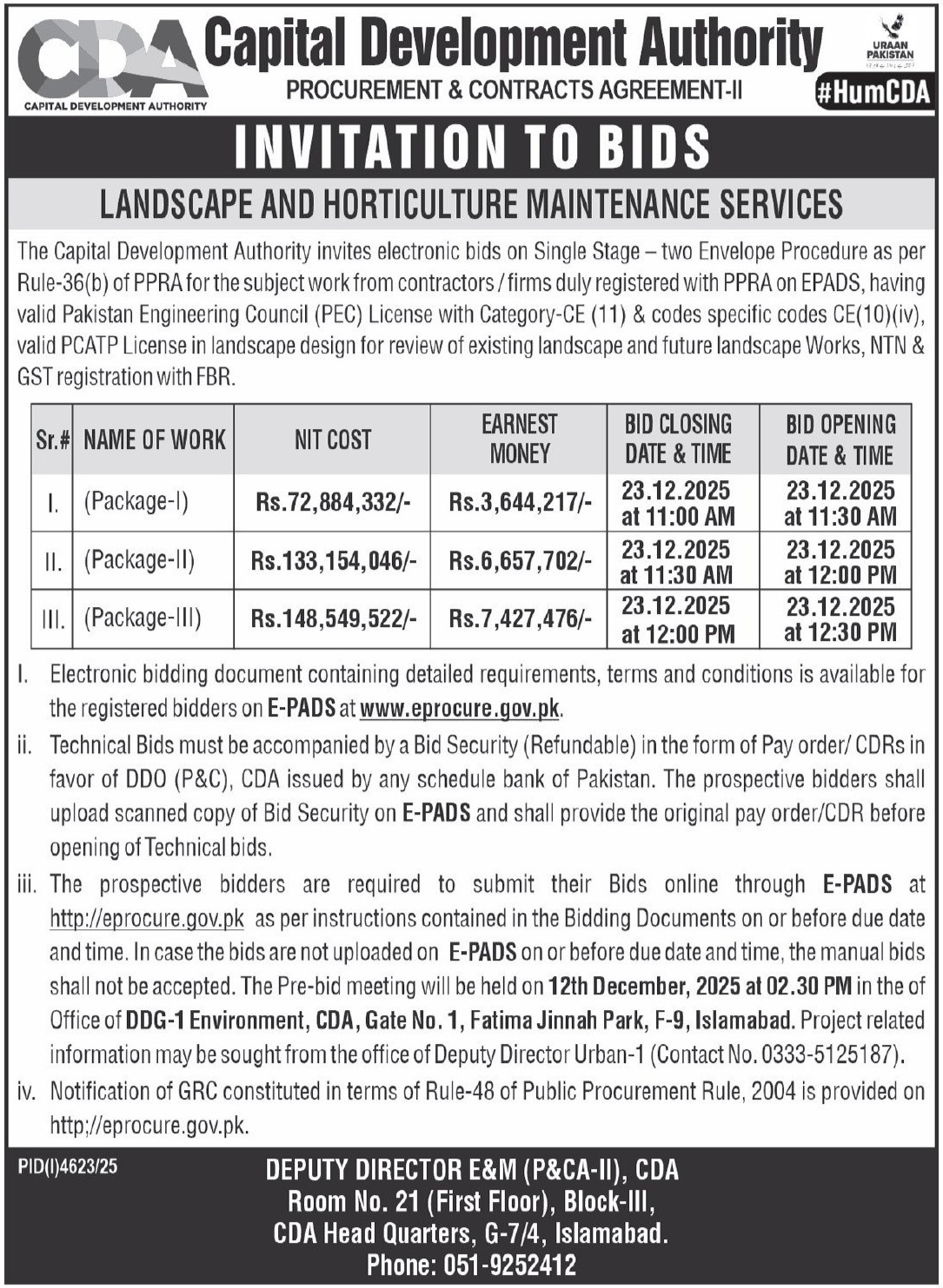 Water Supply Scheme / Drains / Sewerage, Repair & Maintenance, Horticulture, Engineering, Development Authority, Construction