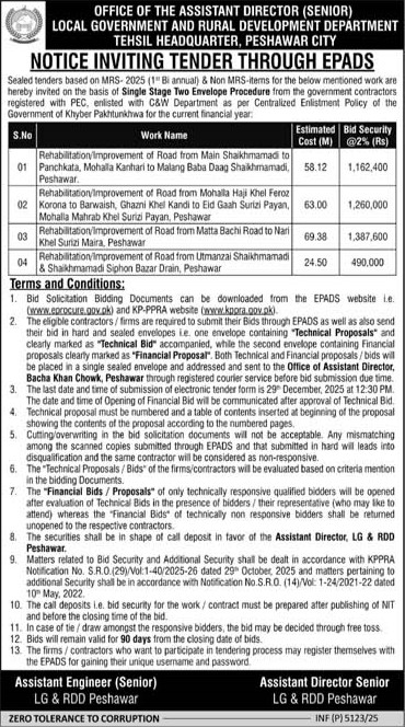 Water Supply Scheme / Drains / Sewerage, Roads, Repair & Maintenance, Engineering, Construction, Buildings