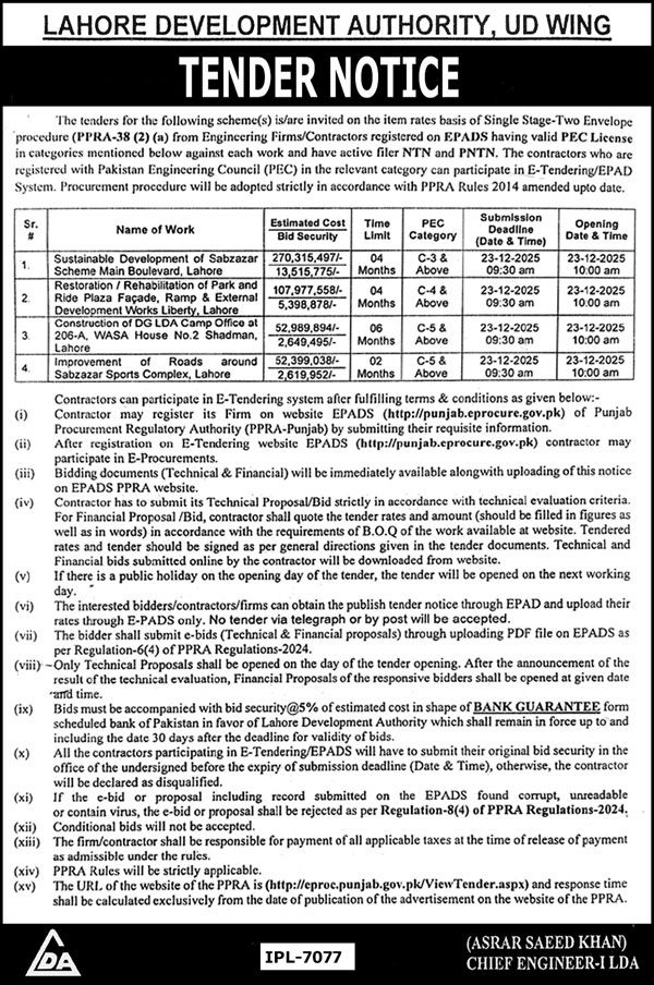 Roads, Repair & Maintenance, LDA, Engineering, Development Authority, Construction, Buildings