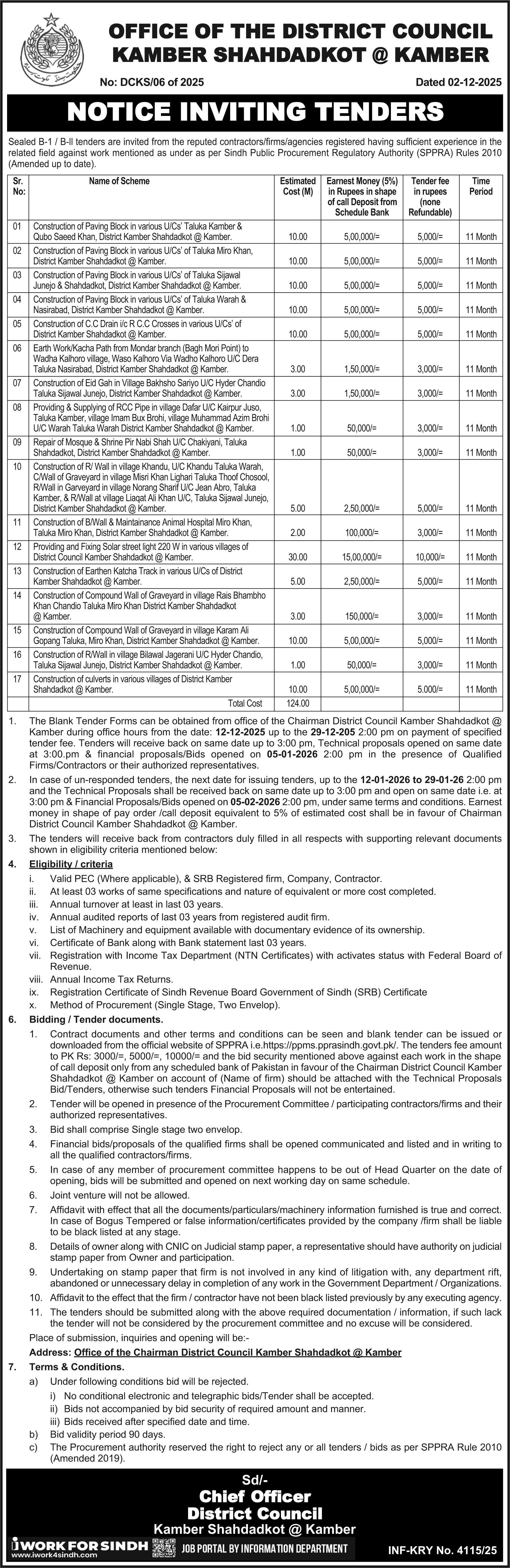 Water Supply Scheme / Drains / Sewerage, Roads, Repair & Maintenance, Engineering, Construction, Buildings