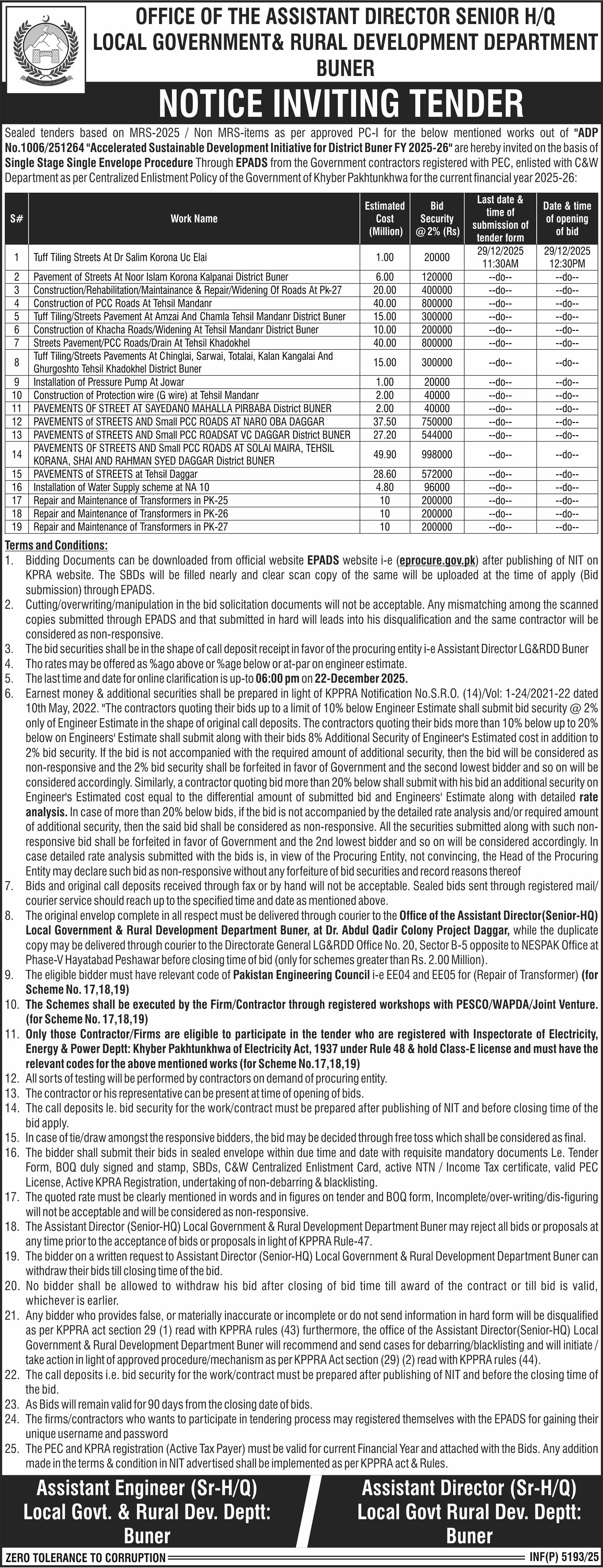 Water Supply Scheme / Drains / Sewerage, Tubewells, Tiles/Marbles, Roads, Repair & Maintenance, Pumps, Engineering, Construction, Buildings