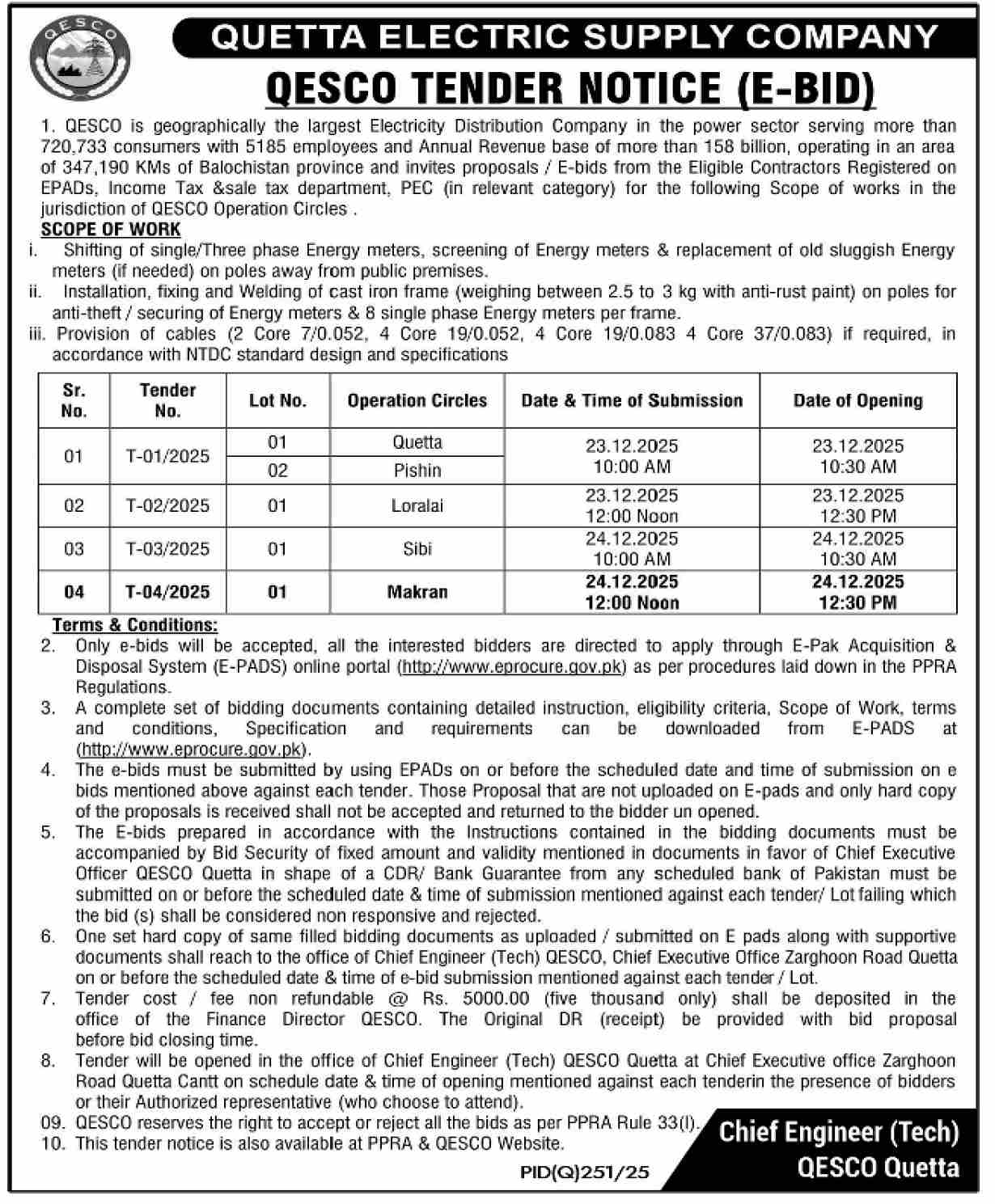 WAPDA, Mechanical, Machinery, General Order Supply, Energy, Electronics, Electrical, Cables