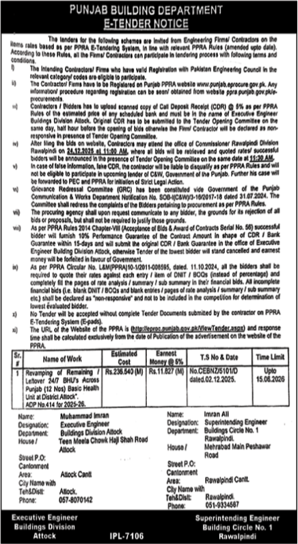 Water Supply Scheme / Drains / Sewerage, Roads, Repair & Maintenance, Engineering, Construction, Buildings