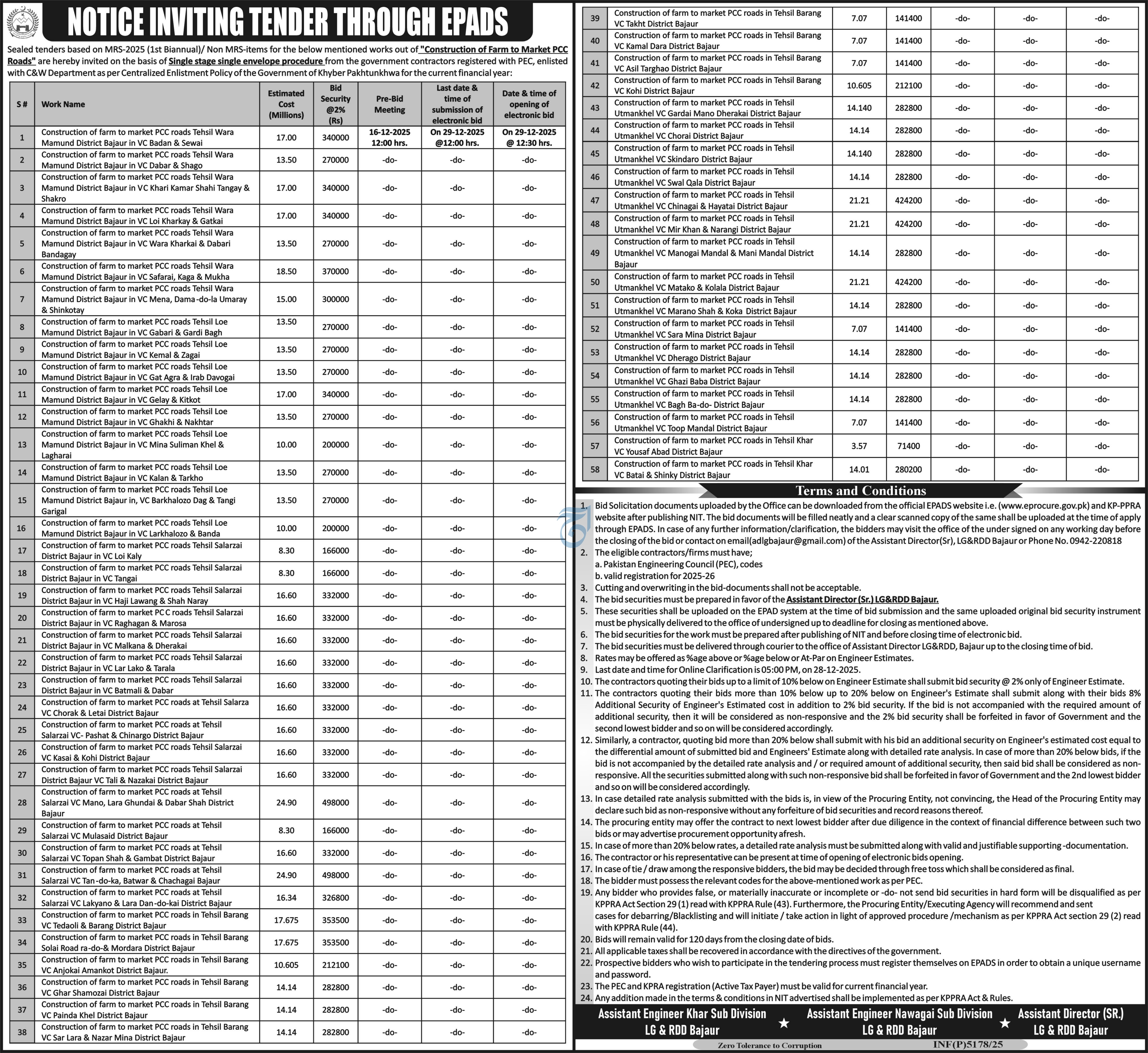 Water Supply Scheme / Drains / Sewerage, Roads, Repair & Maintenance, Engineering, Construction, Buildings