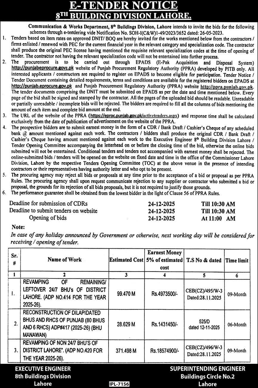 Water Supply Scheme / Drains / Sewerage, Roads, Repair & Maintenance, Engineering, Construction, Buildings