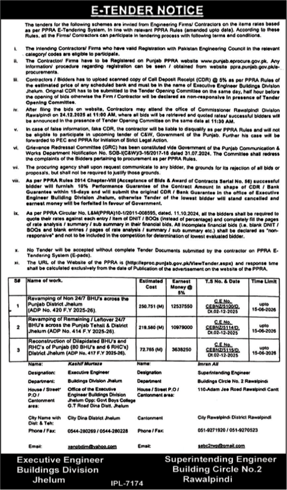 Water Supply Scheme / Drains / Sewerage, Roads, Repair & Maintenance, Engineering, Construction, Buildings