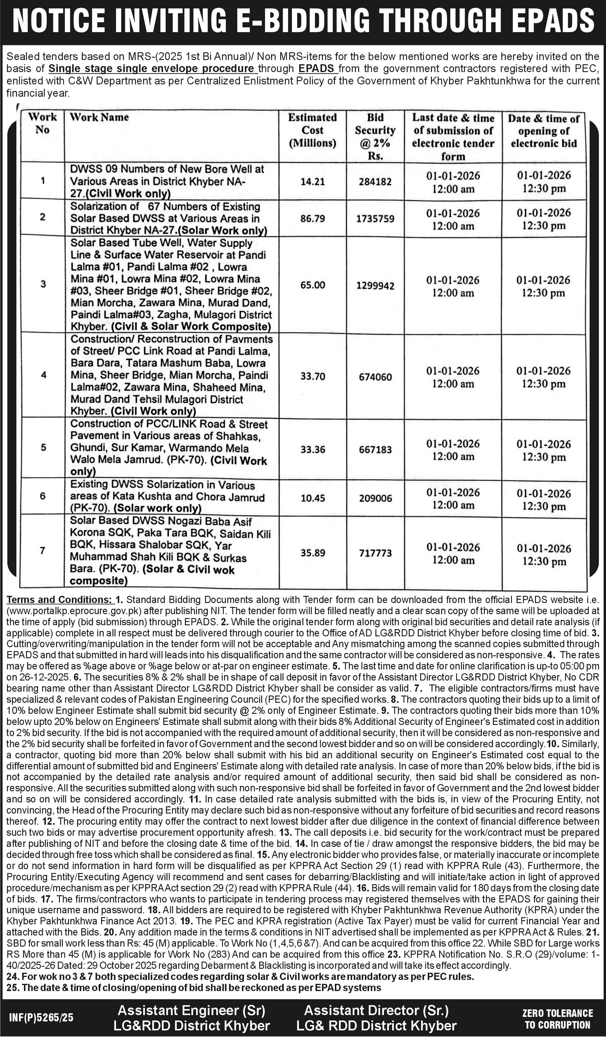 Water Supply Scheme / Drains / Sewerage, Tubewells, Roads, Repair & Maintenance, Pumps, Engineering, Energy, Construction, Buildings
