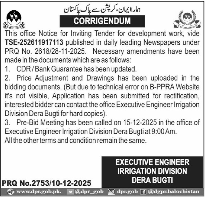 Water Supply Scheme / Drains / Sewerage, Roads, Repair & Maintenance, Engineering, Corrigendum/Addendum , Construction, Buildings