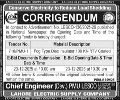 WAPDA, Mechanical, Machinery, General Order Supply, Electronics, Electrical, Corrigendum/Addendum