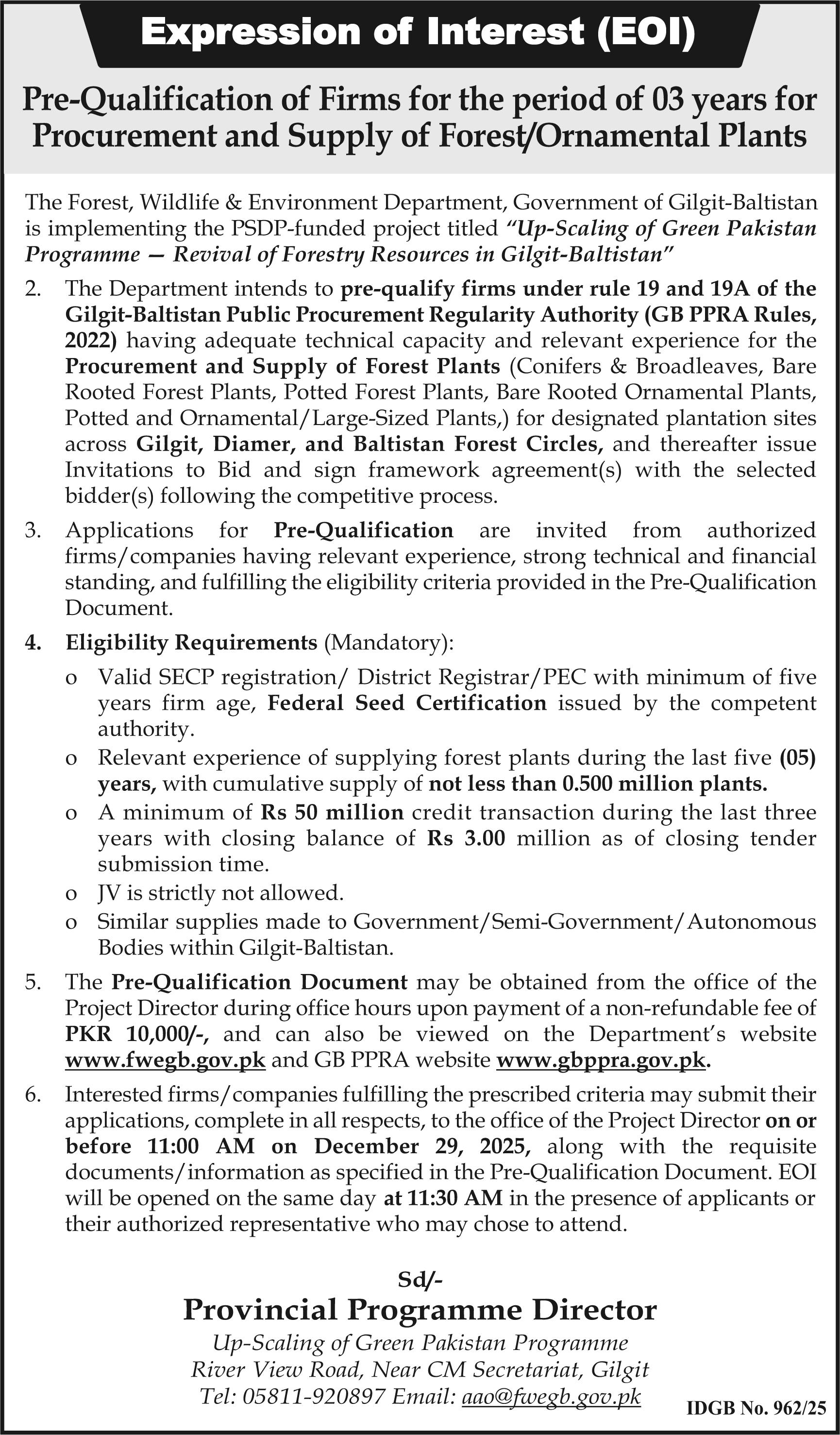Services Required, Pre Qualification, Horticulture, General Order Supply, Forest, Consultancy, Agriculture