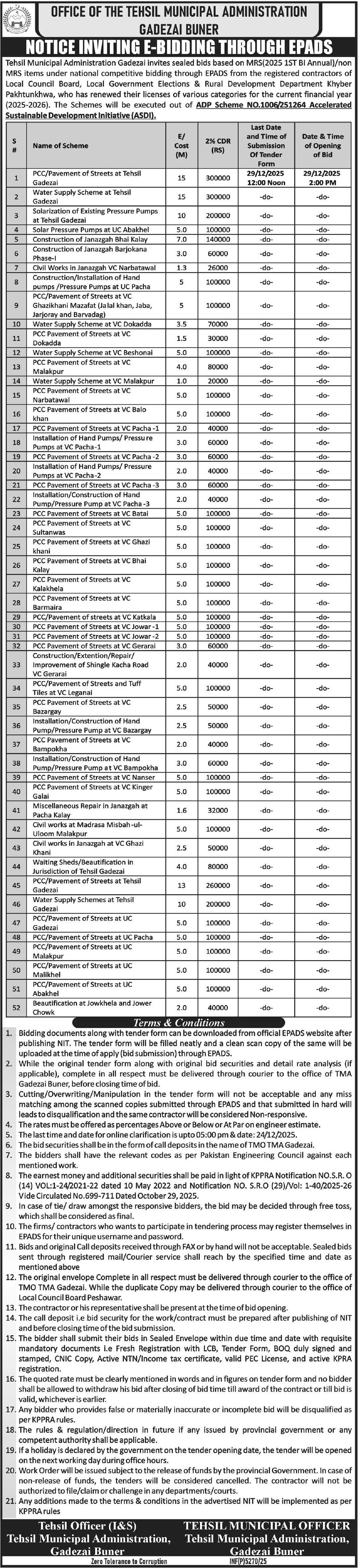 Water Supply Scheme / Drains / Sewerage, Roads, Repair & Maintenance, Engineering, Construction, Buildings
