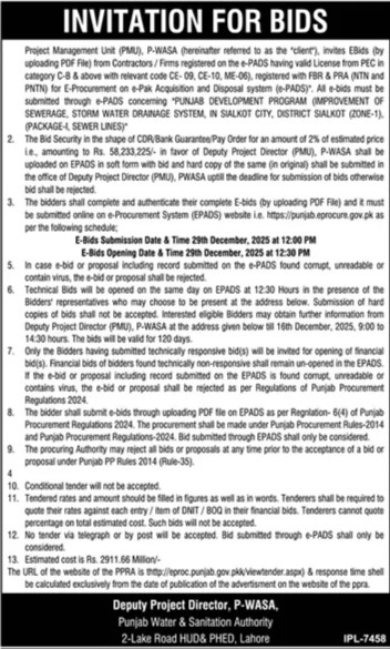 Water Supply Scheme / Drains / Sewerage, WASA, Roads, Repair & Maintenance, LDA, Engineering, Construction, Buildings