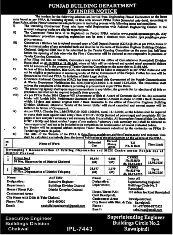 Water Supply Scheme / Drains / Sewerage, Roads, Repair & Maintenance, Engineering, Construction, Buildings