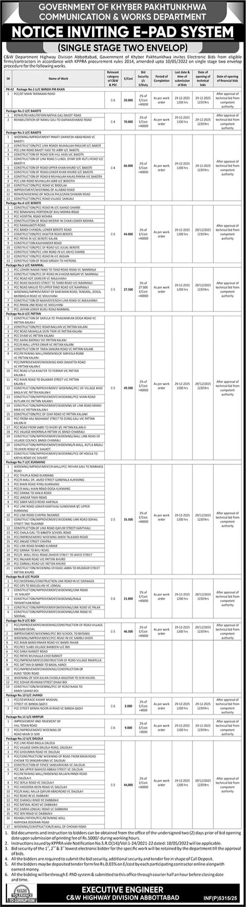 Water Supply Scheme / Drains / Sewerage, Roads, Repair & Maintenance, Engineering, Construction, Buildings