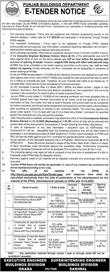 Water Supply Scheme / Drains / Sewerage, Roads, Repair & Maintenance, Engineering, Construction, Buildings