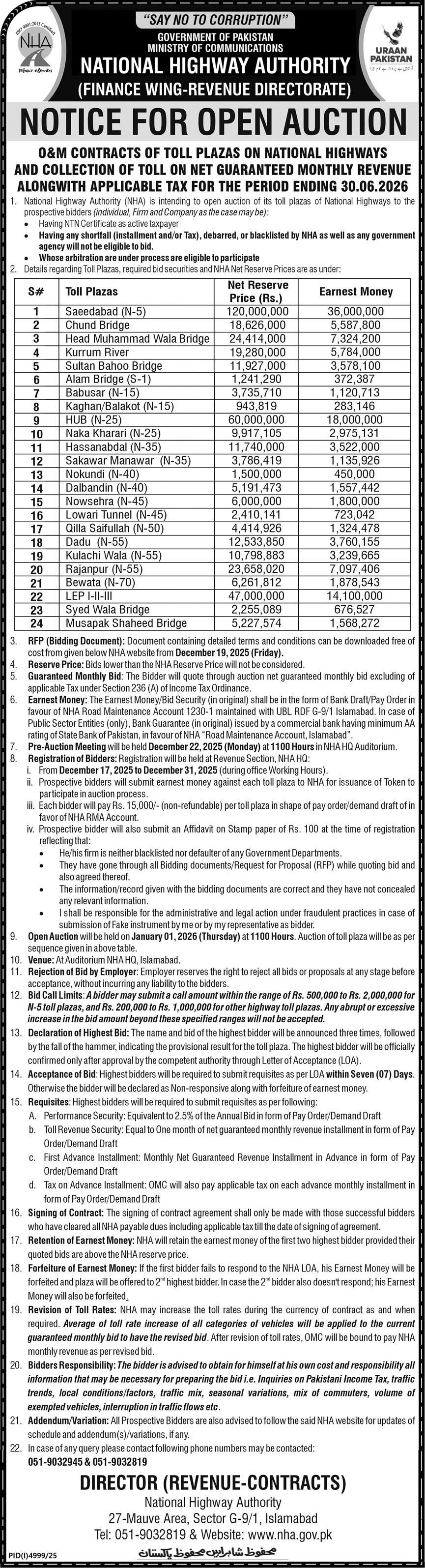 Toll Tax, Scrap Material, NHA, Highways, Baldia, Auction