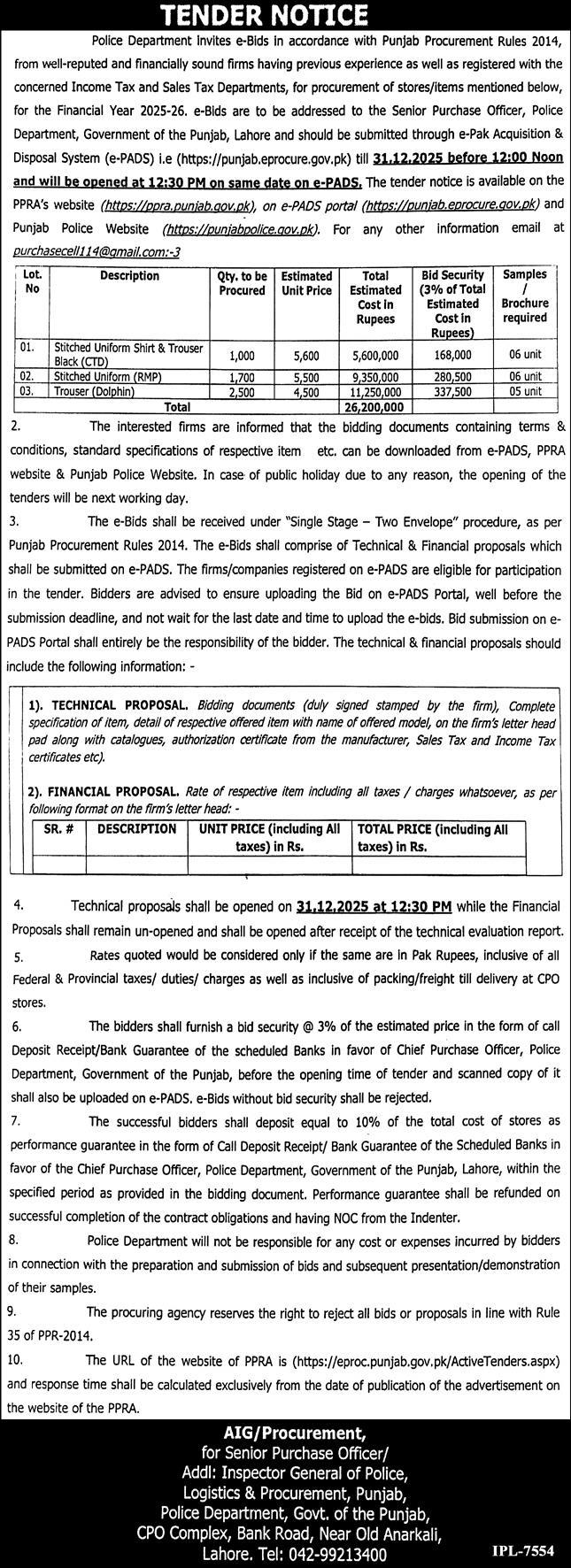 Tender Description