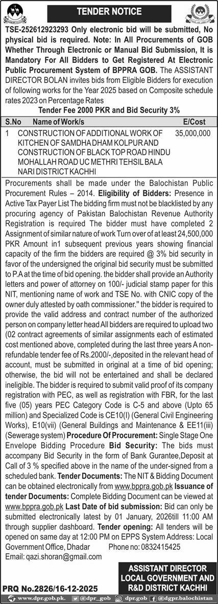Water Supply Scheme / Drains / Sewerage, Roads, Repair & Maintenance, Engineering, Construction, Buildings, Addition & Alteration
