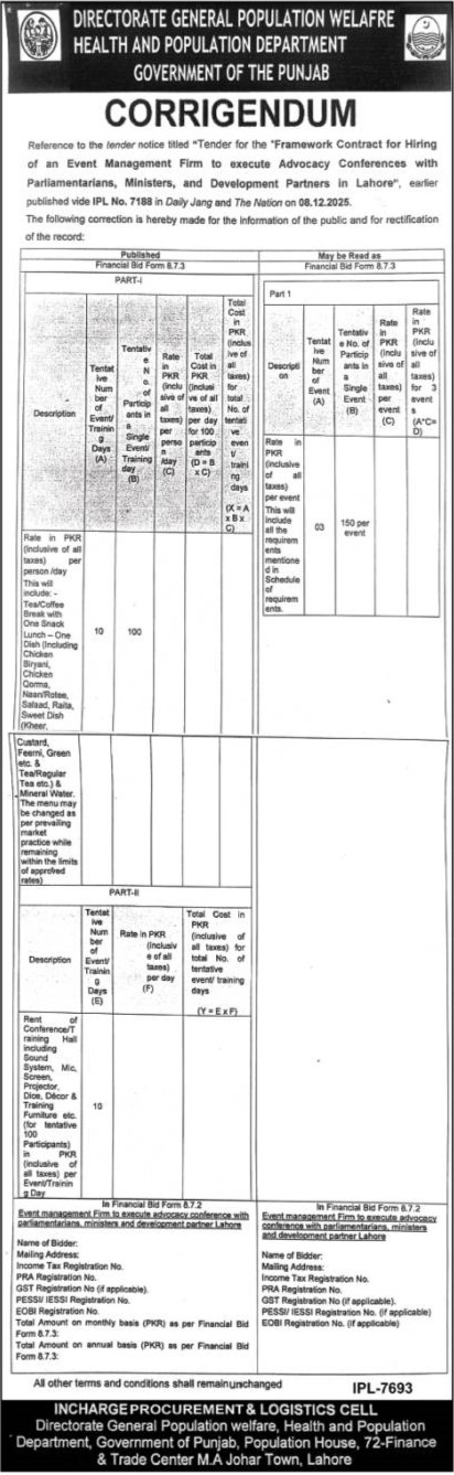 Tender Description