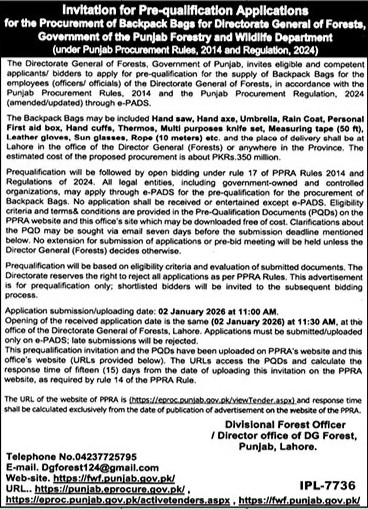 Pre Qualification, General Order Supply, Forest, Bags