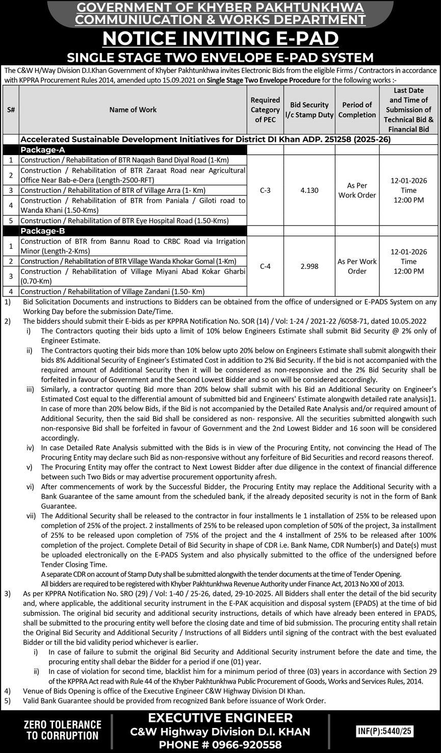 Water Supply Scheme / Drains / Sewerage, Roads, Repair & Maintenance, Engineering, Construction, Buildings