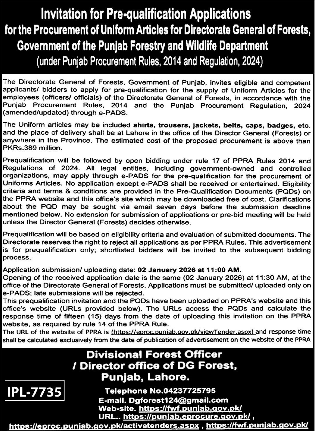 Textile/Uniform/Shoes, Pre Qualification, General Order Supply