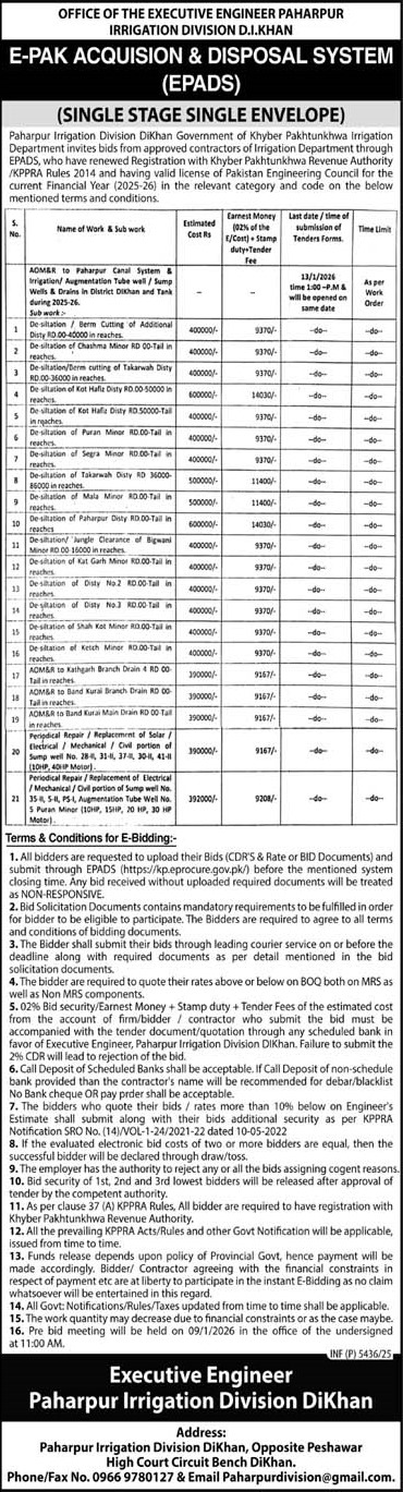 Water Supply Scheme / Drains / Sewerage, Roads, Repair & Maintenance, Engineering, Construction, Buildings