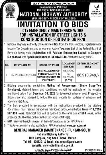 Roads, Repair & Maintenance, NHA, Mechanical, Machinery, Light, Highways, General Order Supply, Engineering, Electronics, Electrical, Construction, Buildings