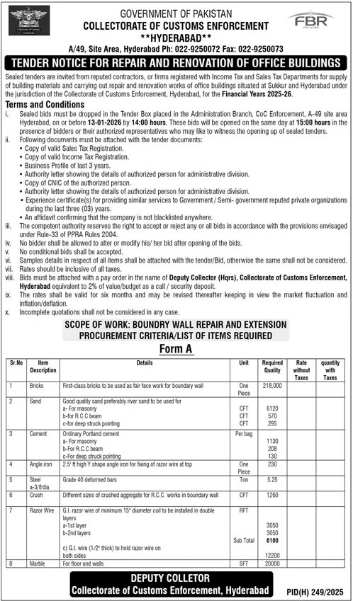 Tender Description