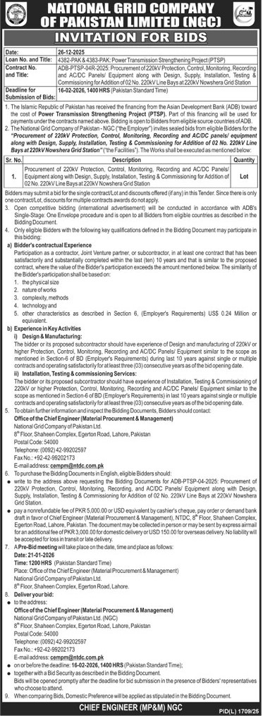 WAPDA, Steel, Mechanical, Machinery, Generators, General Order Supply, Energy, Electronics, Electrical