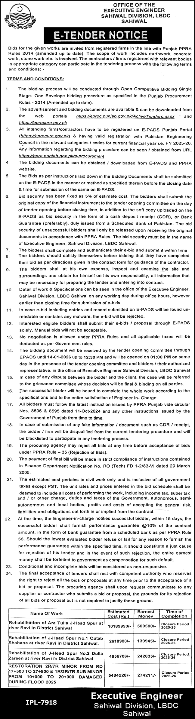 Executive Engineer Sahiwal Division LBDC Sahiwal