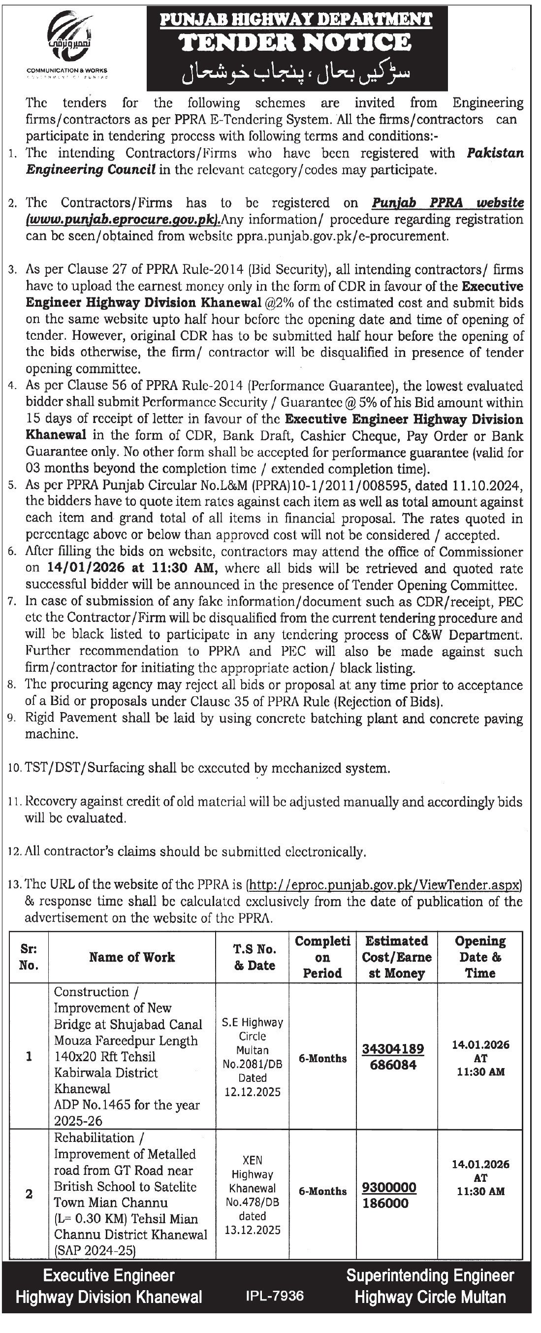 Superintending Engineer Provincial Highway Circle Multan