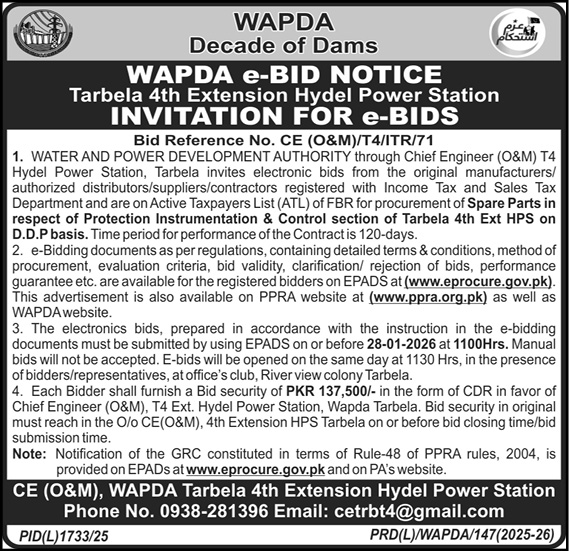 WAPDA, Roads, Repair & Maintenance, Mechanical, Machinery, General Order Supply, Engineering, Electronics, Electrical, Construction, Buildings