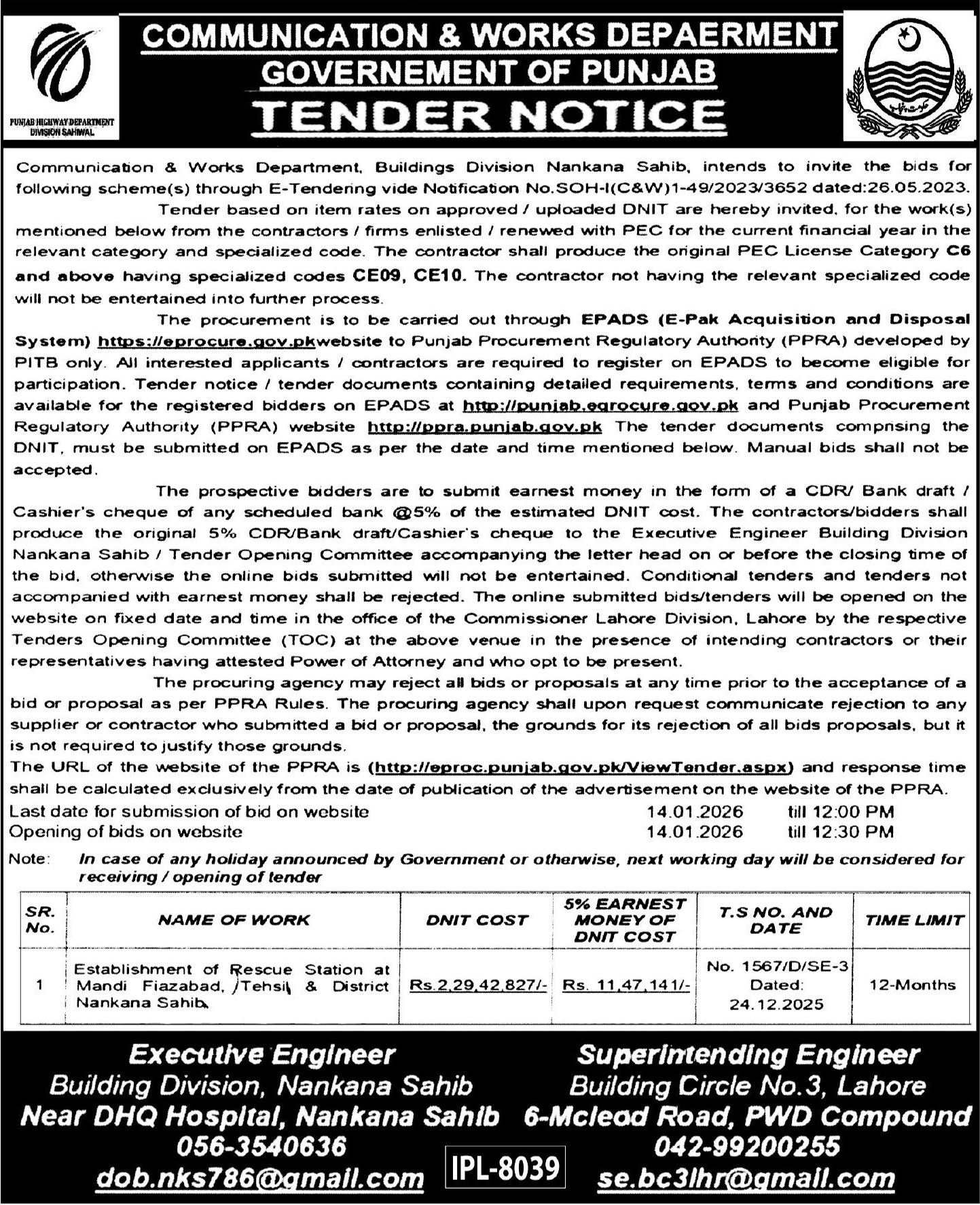 Water Supply Scheme / Drains / Sewerage, Roads, Repair & Maintenance, Engineering, Construction, Communication & Works, Buildings