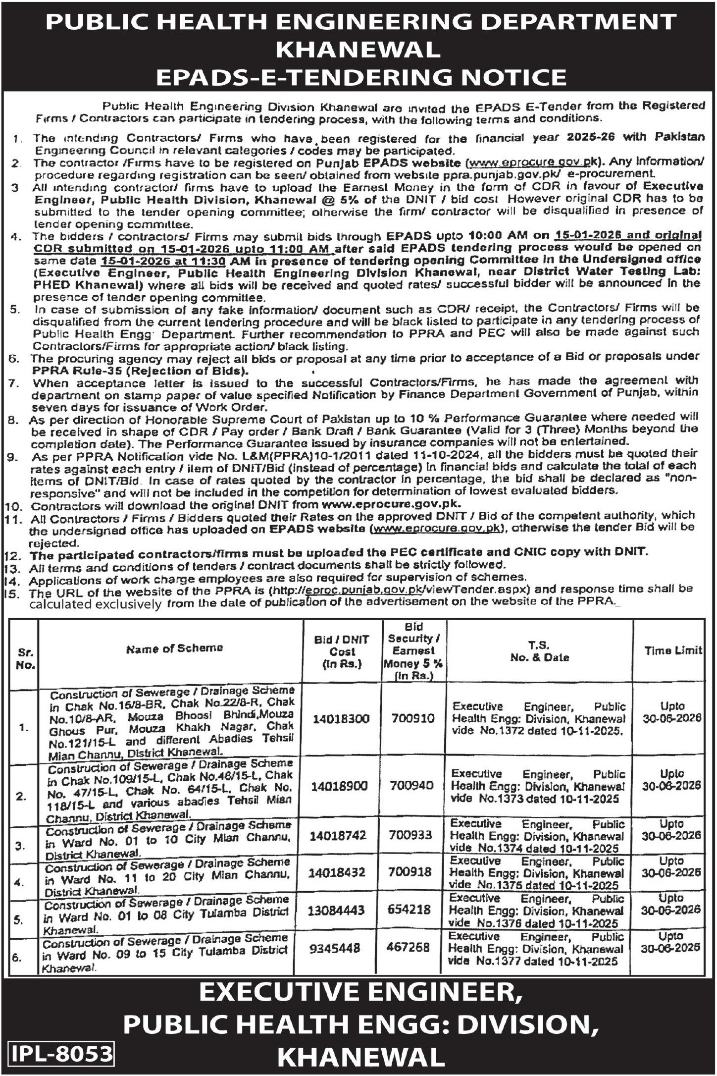 Water Supply Scheme / Drains / Sewerage, Roads, Repair & Maintenance, Engineering, Construction, Buildings