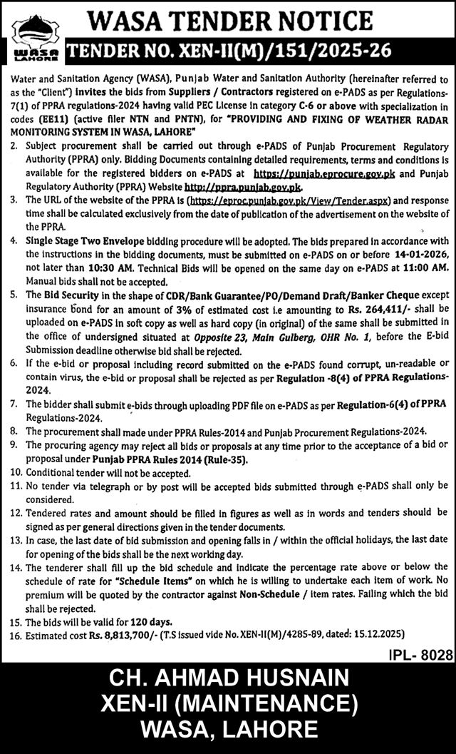 Water Supply Scheme / Drains / Sewerage, WASA, Roads, Repair & Maintenance, LDA, Engineering, Construction, Buildings
