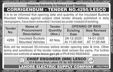 WAPDA, Transportation, General Order Supply, Corrigendum/Addendum